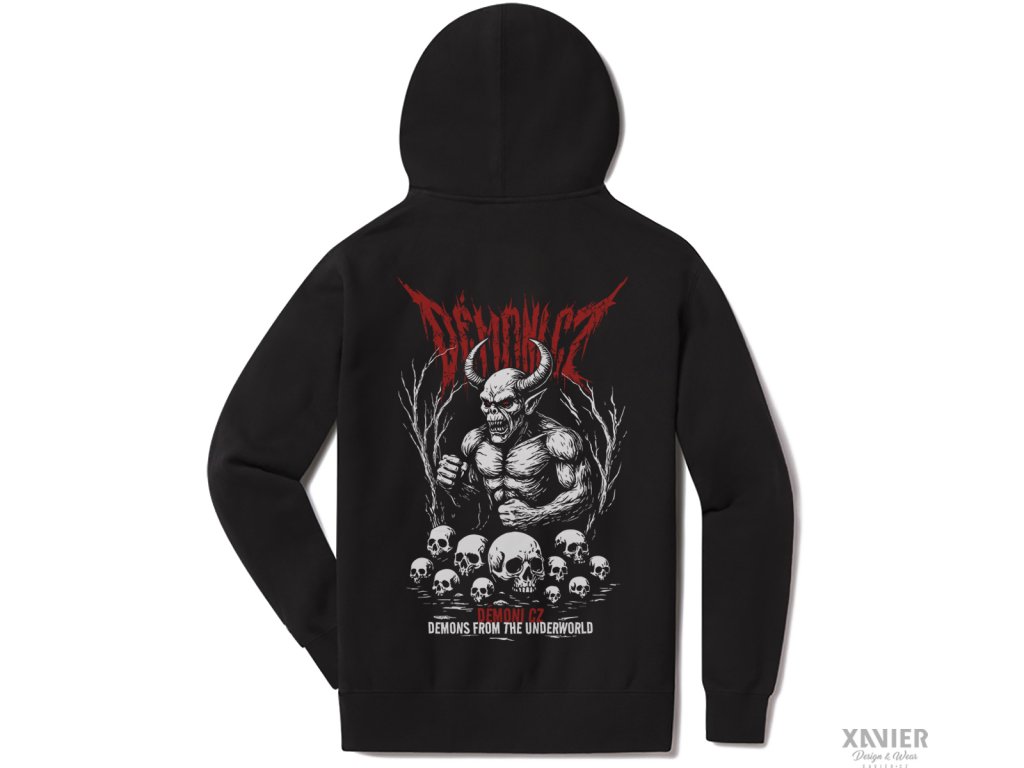 - Originální pánská mikina s kapucí a potiskem Démonicz.cz, které ocení každý příznivce této skupiny. Tričko má velké logo na zádech a menší ve předu.
