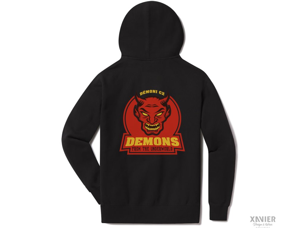 - Originální hrubá pánská / unisex mikina s kapucí, zipem a digitálním potiskem Démoni.cz, kterou ocení každý příznivce této skupiny. Tričko má velké logo na zádech a menší ve předu.