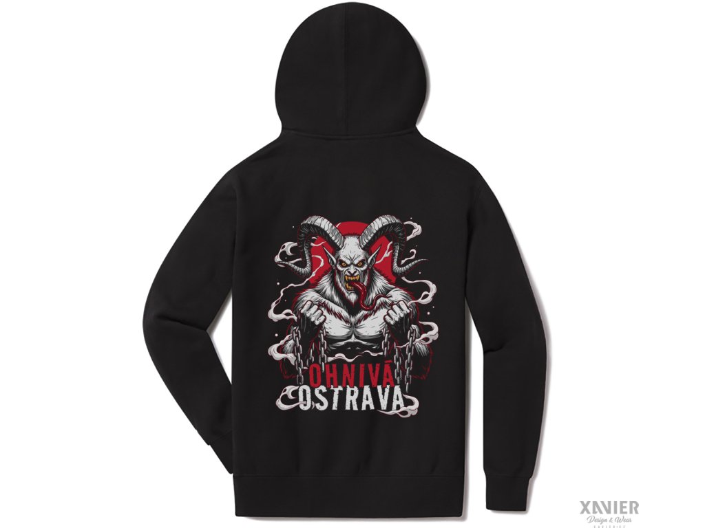 - Originální pánská mikina s kapucí, zipem a potiskem Ohnivá Ostrava - Démonicz.cz, které ocení každý příznivce této skupiny. Tričko má velké logo na zádech a menší ve předu.